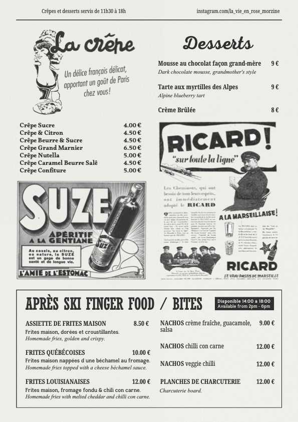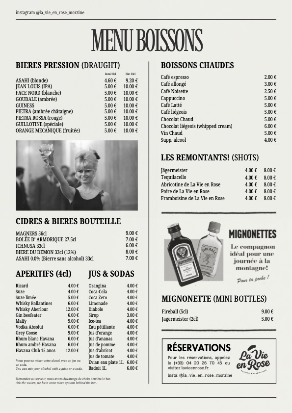 tous nos prix sont en euro et en toutes TAX(TTC) n’hesitez pas a demander la carte des allergenes a votre serveur.